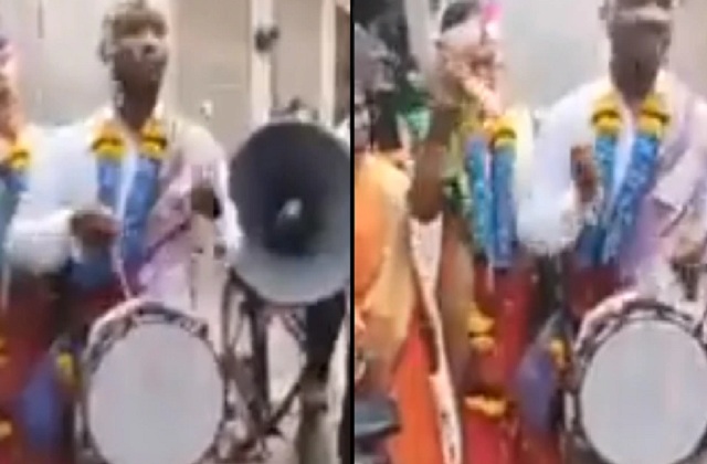 शादी की खुशी: अपनी दुल्हन के सामने जमकर बजाया ढोल, लोग बोले- ''आत्मनिर्भर दूल्हा''