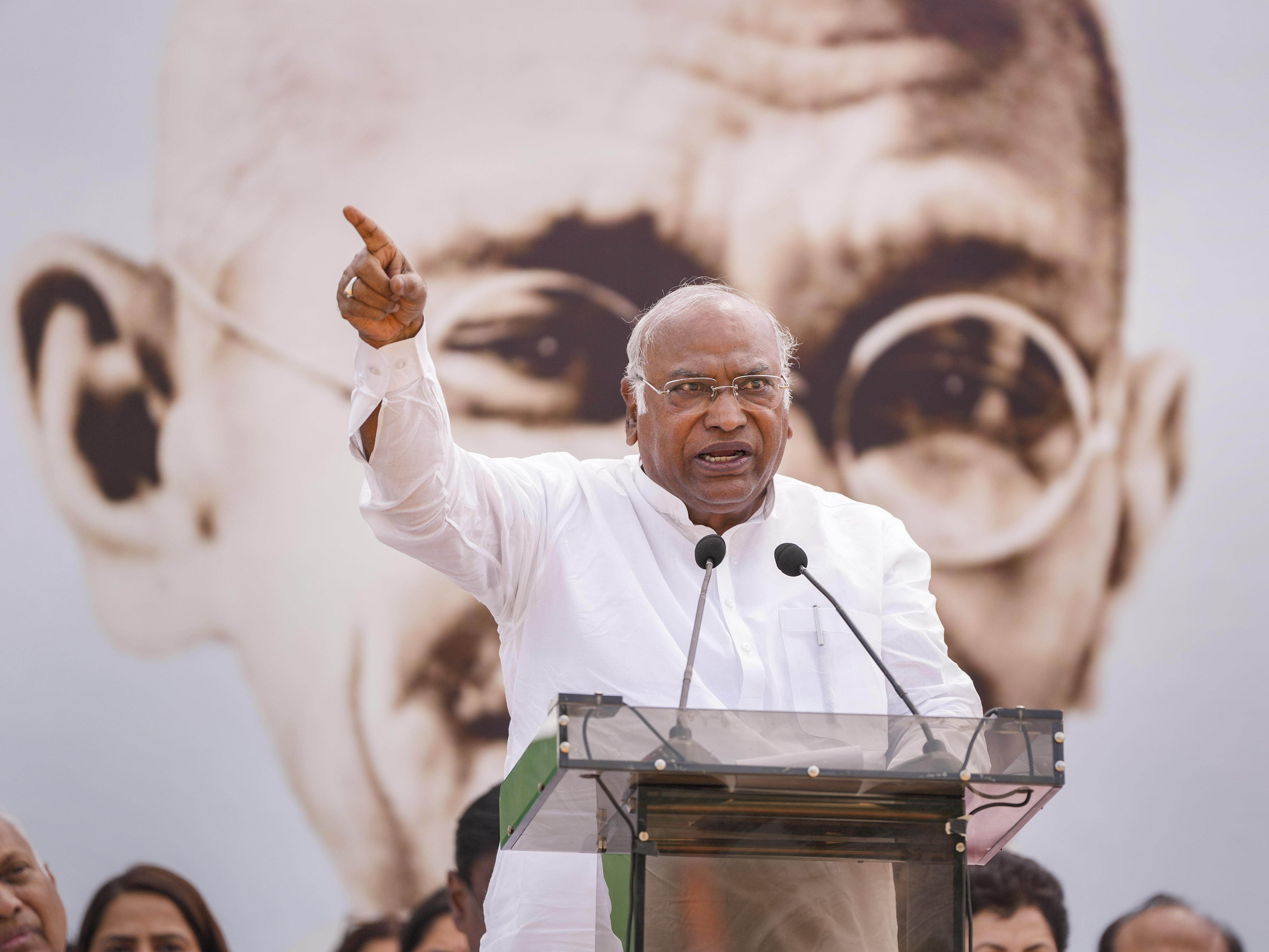 उन्होंने राजघाट के बाहर कांग्रेस के एकदिवसीय ‘संकल्प सत्याग्रह' के दौरान एक सभा को संबोधित करते हुए कहा, ‘‘यह केवल एक सत्याग्रह है लेकिन देश भर में ऐसे कई सत्याग्रह होंगे। संविधान, लोकतंत्र और अभिव्यक्ति की आजादी को बचाने के लिए जो भी कुर्बानी देनी पड़ेगी, हम देंगे।'' खरगे ने राहुल गांधी पर 2019 में अपनी टिप्पणी से ओबीसी का अपमान करने का आरोप लगाने के लिए भाजपा की आलोचना की।