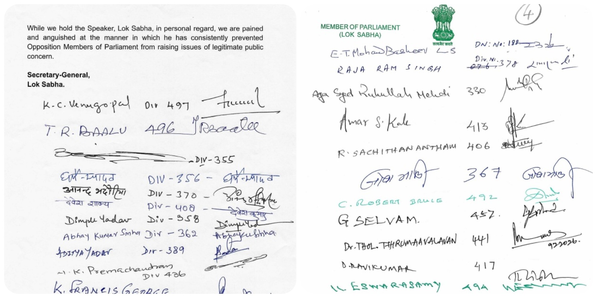 कांग्रेस नेता मणिकम टैगोर बी ने सोशल मीडिया पर कहा कि विपक्ष ने हमेशा संवैधानिक मर्यादाओं में विश्वास रखा है। उन्होंने लिखा कि स्पीकर के व्यक्तिगत सम्मान को बनाए रखते हुए भी, सार्वजनिक महत्व के मुद्दों पर विपक्षी सांसदों को लगातार बोलने का अवसर न मिलने से गहरी निराशा है। उनके अनुसार, कई वर्षों बाद स्पीकर के खिलाफ अविश्वास प्रस्ताव लाना एक जरूरी और असाधारण कदम है।