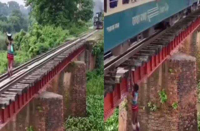 वीडियो में साफ देखा जा सकता है कि युवक रेलवे ट्रैक पर चल रहा था और उसे शायद यह अंदाजा नहीं था कि पीछे से ट्रेन आ रही है। जैसे ही ट्रेन उसके पास पहुंचती है, युवक आखिरी क्षण में ट्रेन की पटरी के नीचे लटककर अपनी जान बचाने की कोशिश करता है। कुछ सेकंड तक युवक सच में ट्रेन के नीचे लटका रहता है। वीडियो में यह भी देखा जा सकता है कि ट्रेन में कई लोग सवार हैं, जबकि कुछ लोग ट्रेन के ऊपर और आगे भी बैठे हैं। ट्रेन के गुजर जाने के बाद आसपास मौजूद लोग युवक को ट्रैक से निकालते हैं, जिससे उसकी जान बच जाती है। यह वीडियो सोशल मीडिया प्लेटफॉर्म X पर @Uday_T2 नाम के अकाउंट से शेयर किया गया है।