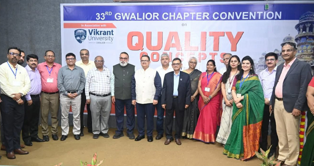 विक्रांत विश्वविद्यालय ग्वालियर में क्वालिटी सर्कल फोरम ऑफ इंडिया (QCFI) इंदौर चैप्टर द्वारा 33वां क्वालिटी कन्वेंशन आयोजित किया गया। इस अवसर पर देशभर से लगभग 90 टीमों ने अपने कार्यस्थल पर किये गए नवाचारों और सुधारों की केस स्टडी प्रस्तुत की।