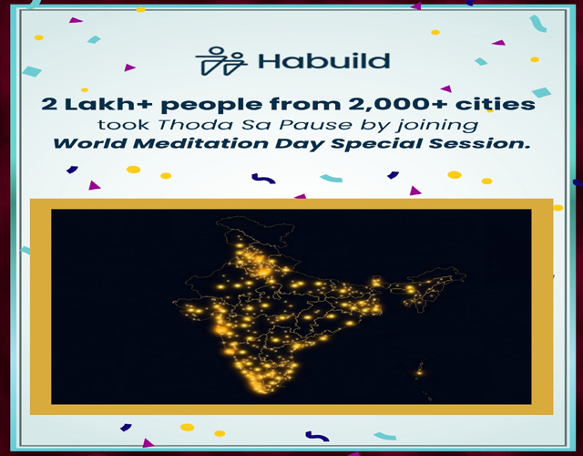 विश्व ध्यान दिवस के अवसर पर हैबिल्ड के अभियान ''थोड़ा सा पॉज़'' से जुड़े 2 लाख लोग, एक साथ महसूस की शांति