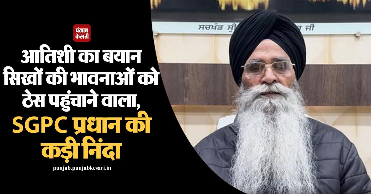 आतिशी का बयान सिखों की भावनाओं को ठेस पहुंचाने वाला, SGPC प्रधान की कड़ी निंदा