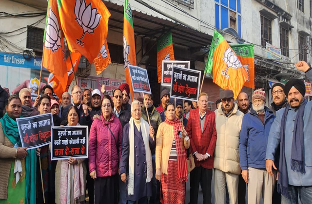 आतिशी विवाद: BJP कार्यकर्ताओं ने तरुण चुग के कार्यालय के बाहर CM मान और आतिशी का फूंका पुतला