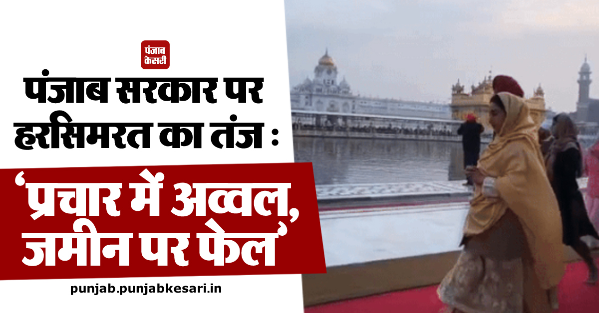 अमृतसर: शिरोमणि अकाली दल की वरिष्ठ नेता और सांसद बीबा हरसिमरत कौर बादल ने आम आदमी पार्टी की पंजाब सरकार पर तीखा तंज कसा है। सच्चखंड श्री दरबार साहिब में माथा टेकने के बाद मीडिया से बातचीत में उन्होंने कहा कि प्रदेश में सरकार के बजाय केवल ‘प्रचार मशीन’ चल रही है। उनका कहना है कि यह सरकार जमीन पर फेल है और सिर्फ प्रचार में अव्वल है।