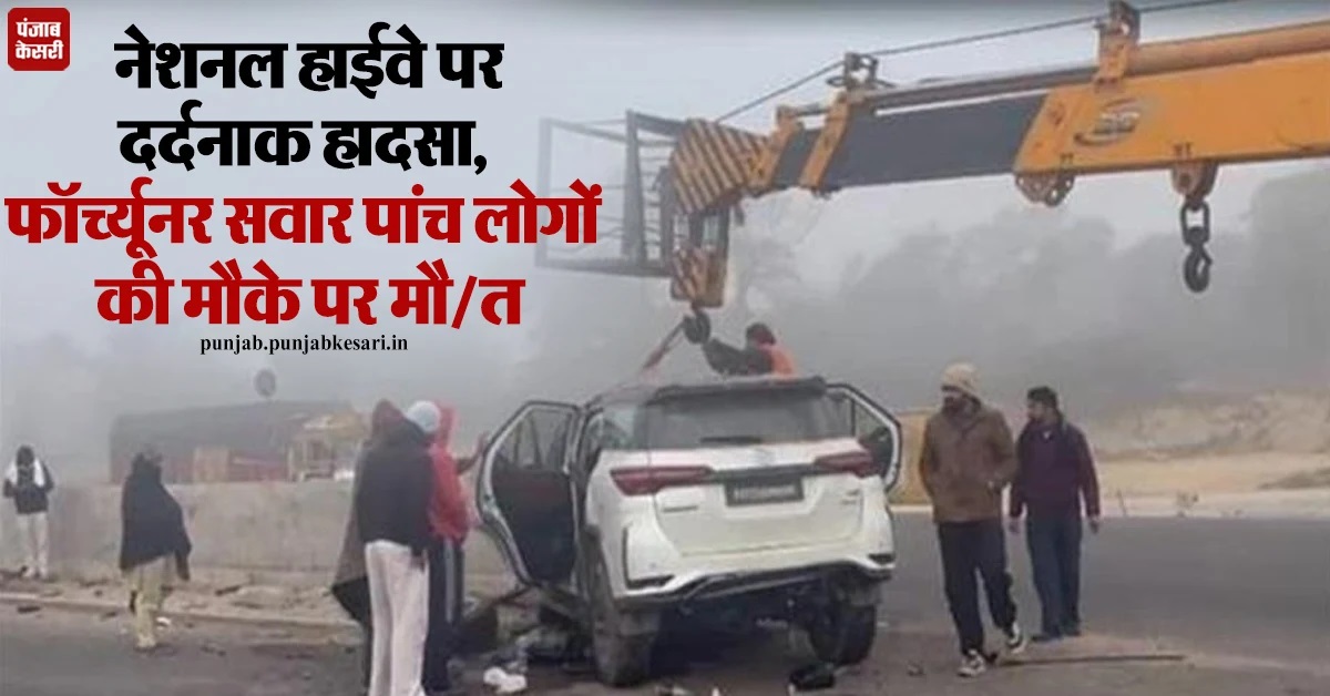 नेशनल हाईवे पर दर्दनाक हादसा, फॉर्च्यूनर सवार पांच लोगों की मौके पर मौ/त