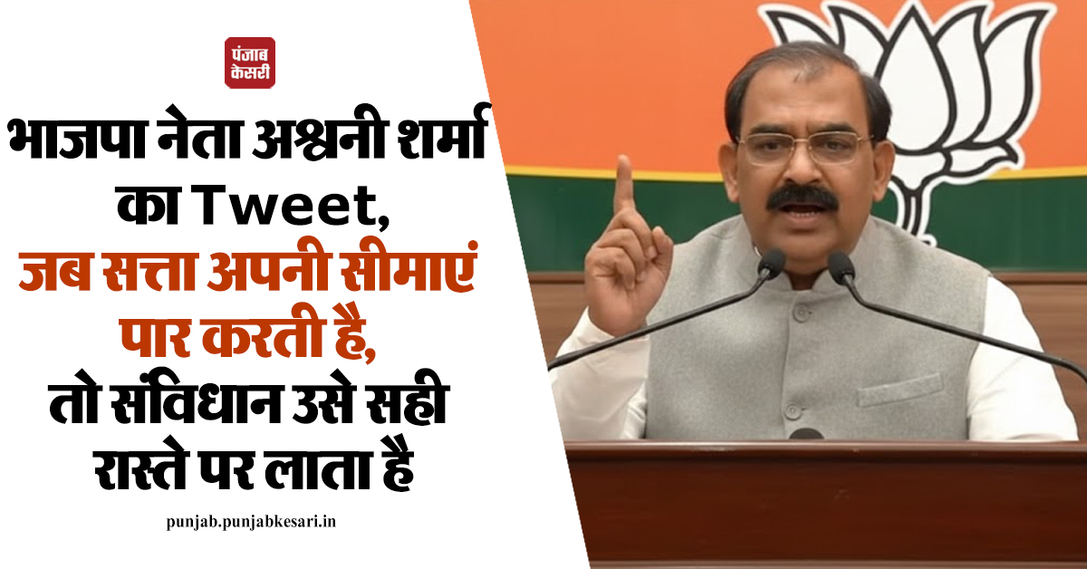 भाजपा नेता अश्वनी शर्मा का Tweet, जब सत्ता अपनी सीमाएं पार करती है, तो संविधान उसे सही रास्ते पर लाता है