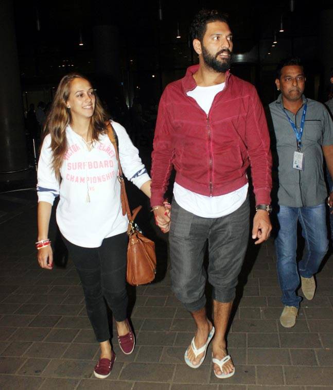 Pics: हनीमून के बाद कुछ इस अंदाज में नजर आए युवी-हेजल
