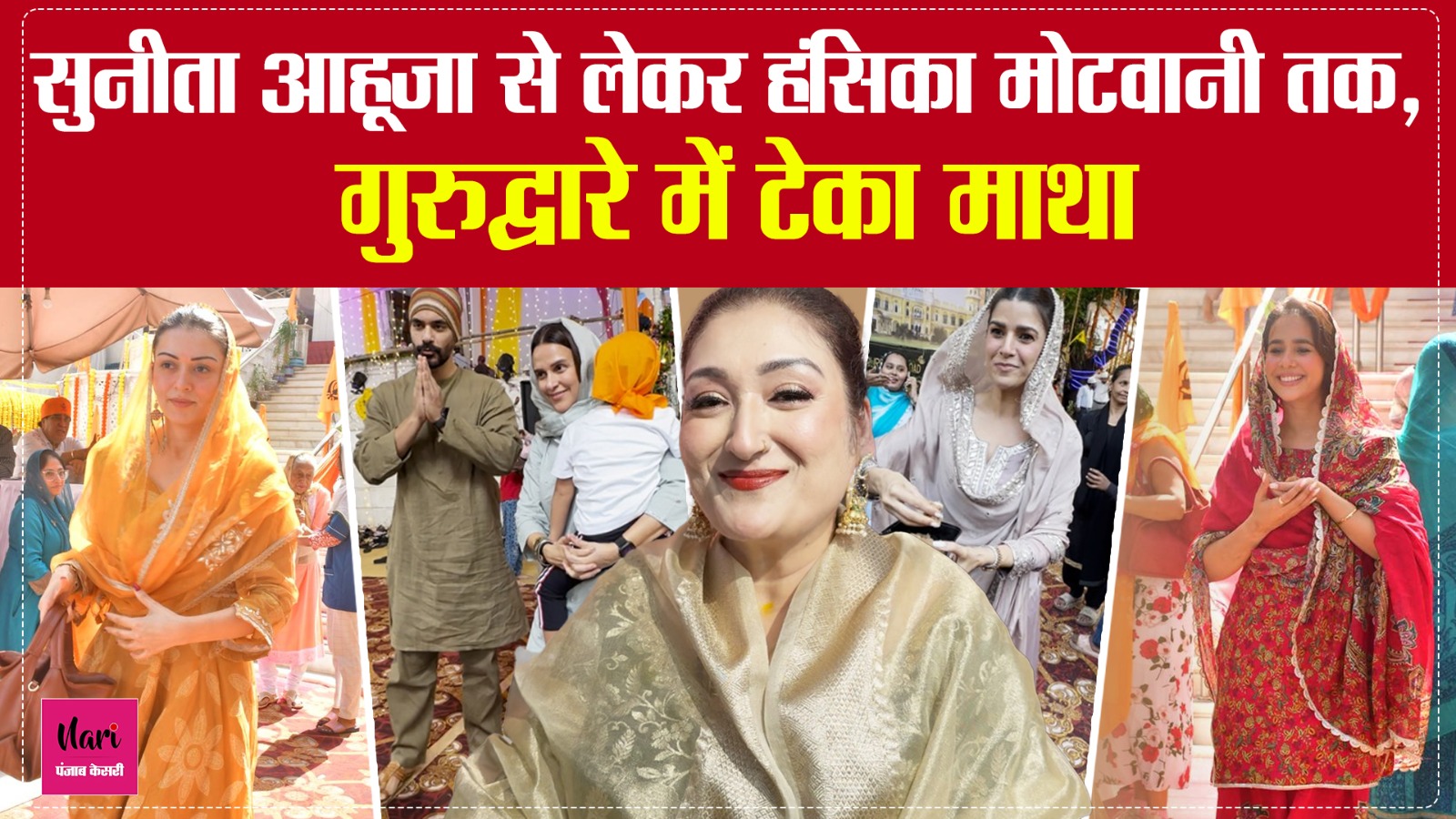 सलवार सूट और सिर पर दुपट्टा लिए गुरुद्वारे पहुंची Sunita Ahuja, अनारकली सूट में Hansika Motwani ने टेका माथा